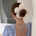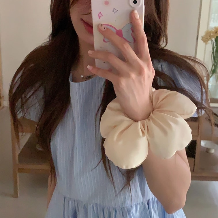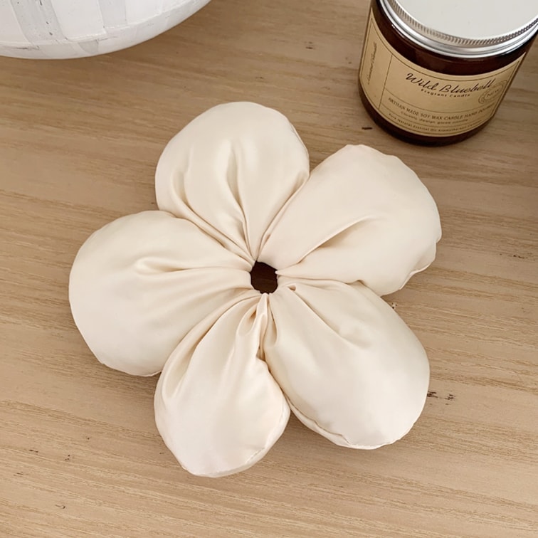 HSPM 新款小红书网红爆款众高级感博主风海绵花朵发圈立体面包发绳度假风大肠圈发饰头饰 米白花朵 F