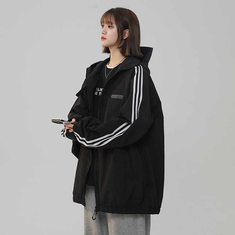 【中国直邮】 HSPM 新款;连帽冰丝超薄防晒衣 黑色 M