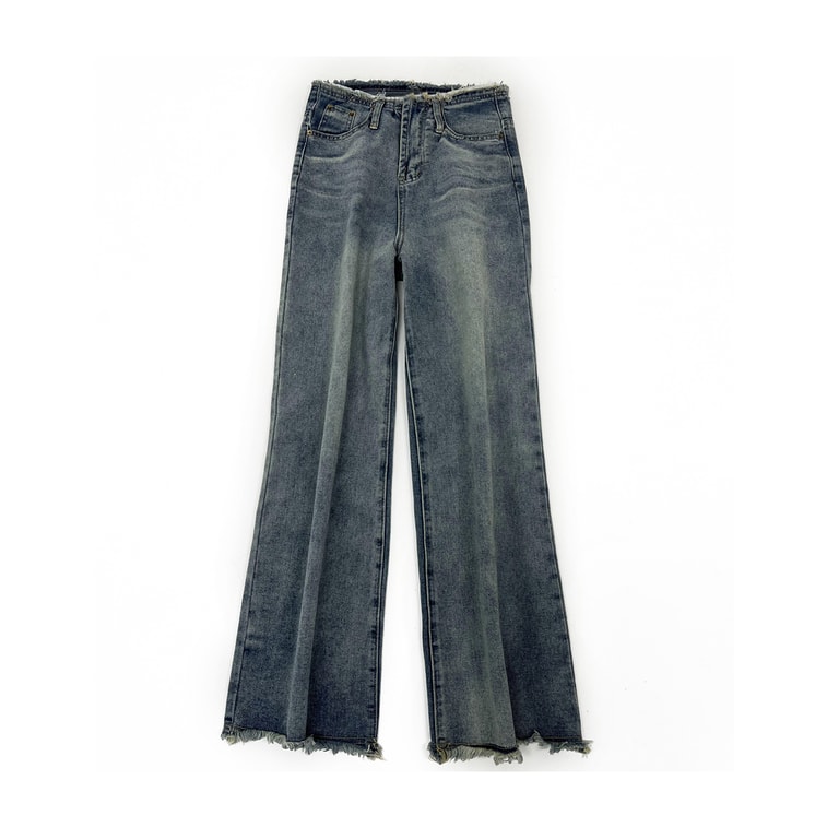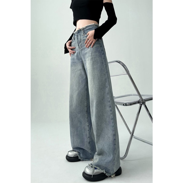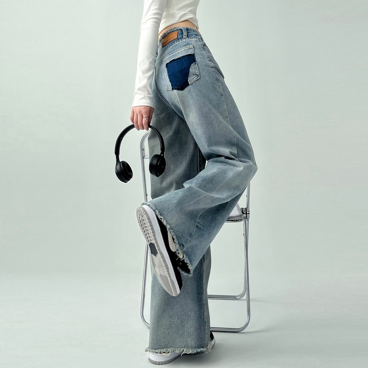 【中国直邮】 HSPM 新款复古撞色高腰阔腿牛仔裤 蓝色 S