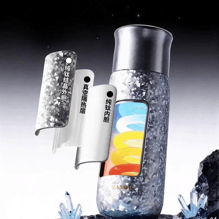 【中国直邮】 vanow 新款纯钛保温杯双层钛水杯高端钛杯极光银 430ml | 亚米