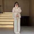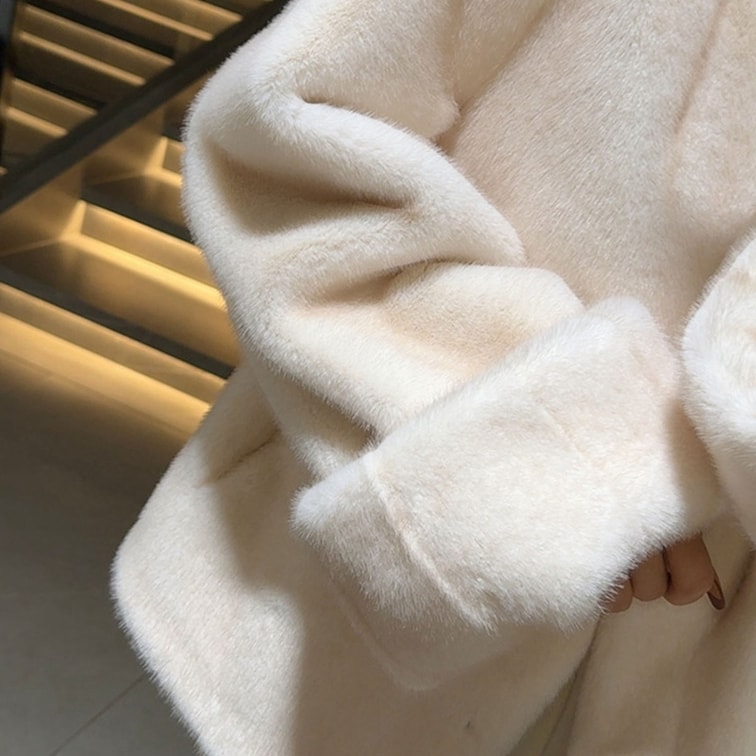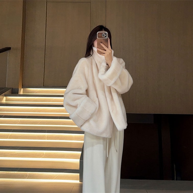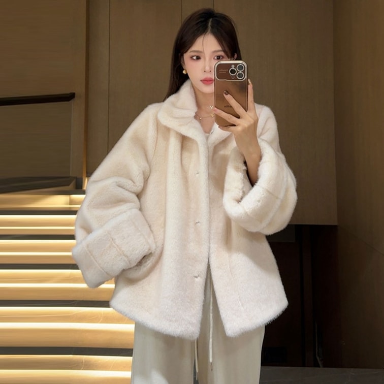 【中国直邮】 HSPM 新款加厚短款方领南瓜挽袖中古仿水貂毛绒外套 米白色 M
