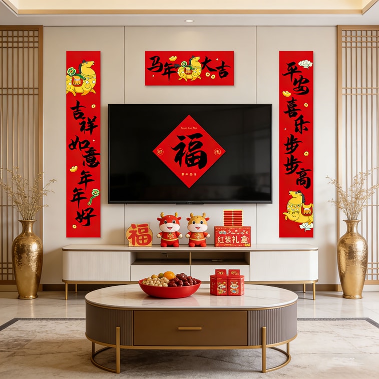 优禾的家 2026新款对联入户装饰福字门贴窗花 【马年大吉款】1副