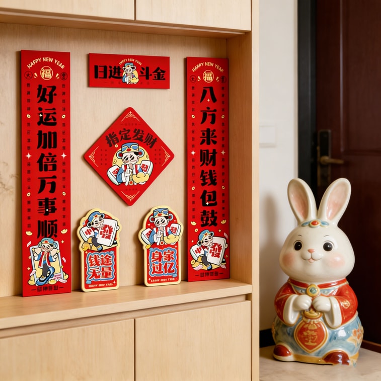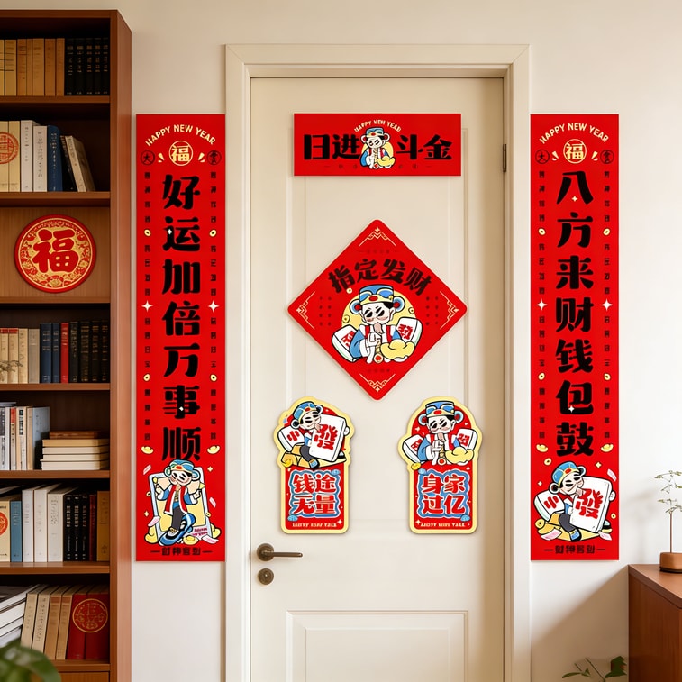 优禾的家 2026新年磁吸对联 福字门贴入户氛围感装饰 日进斗金款 1副 【磁吸款】