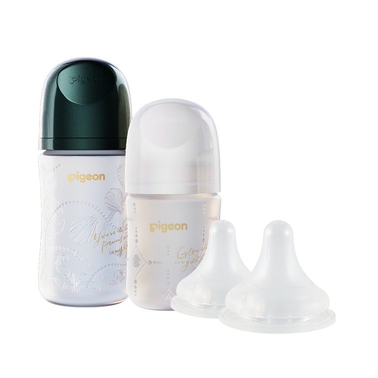 日本 PIGEON贝亲 新生儿珍珠奶瓶礼盒 (硅橡胶护层 彩绘玻璃奶瓶160ml & 240ml; S & L号奶嘴)