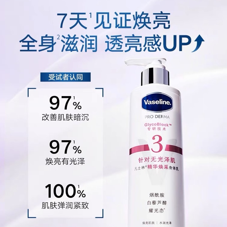 【中国直邮】凡士林 3号烟酰胺美白焕亮身体乳保湿春夏全身细腻润肤露 220ml/瓶