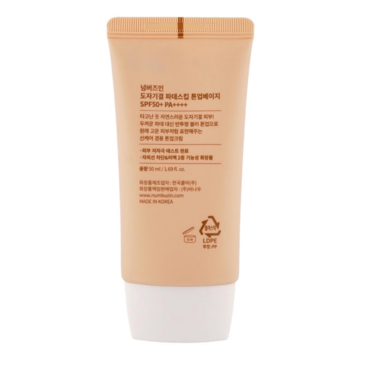 【香港直邮】 韩国 Numbuzin No.3号陶瓷美肌素颜霜 柔焦遮瑕定妆粉底 高倍物理防晒 SPF50+/PA++++ 50ml