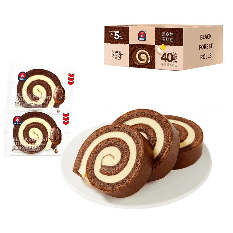 【中国直邮】诺贝达黑森林无蔗糖蛋糕卷低卡代餐健身饱腹感强 黑森林蛋糕卷510g*1箱