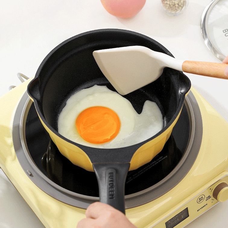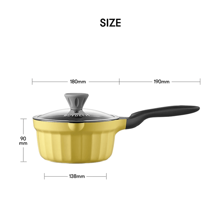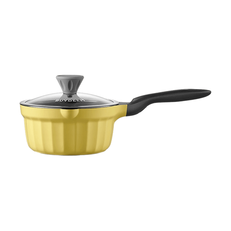 BUYDEEM北鼎 不粘奶锅带玻璃盖 宝宝辅食锅 煎煮一体锅不粘锅 家用汤泡面锅 电磁炉 鹅仔黄 18cm CP141