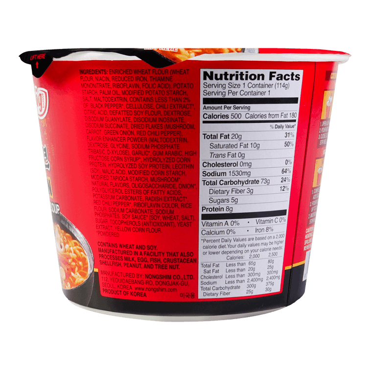 韩国NONGSHIM农心 辛拉面 方便面 经典系列 方便增量碗装 114g