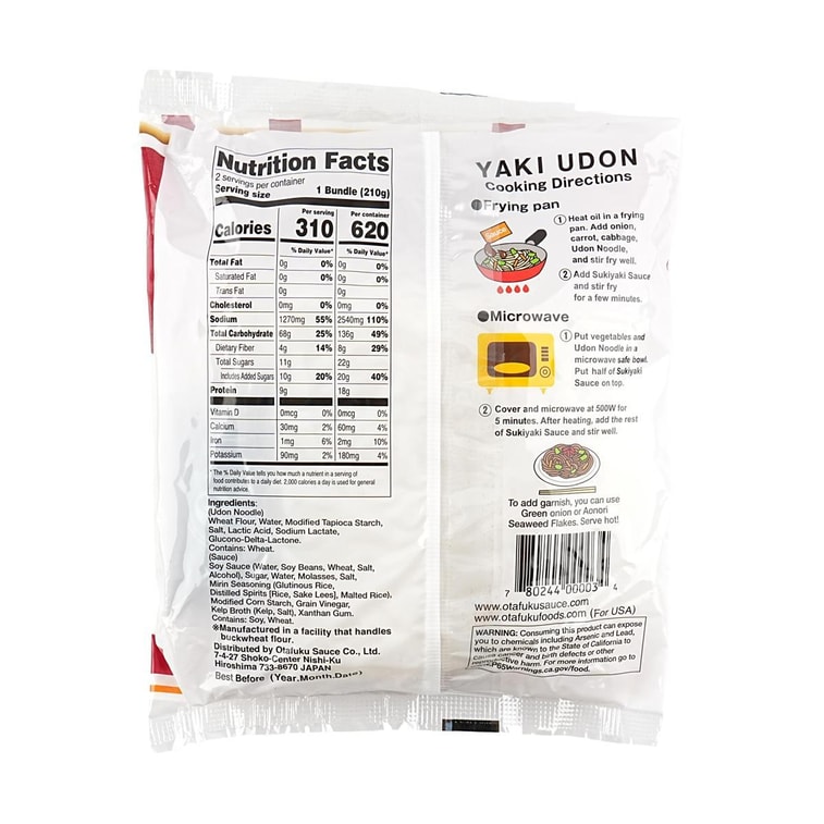 日本OTAFUKU大多福 炒乌冬面 日式炒面方便面 寿喜烧风味 2份装 420g【附带酱料包】