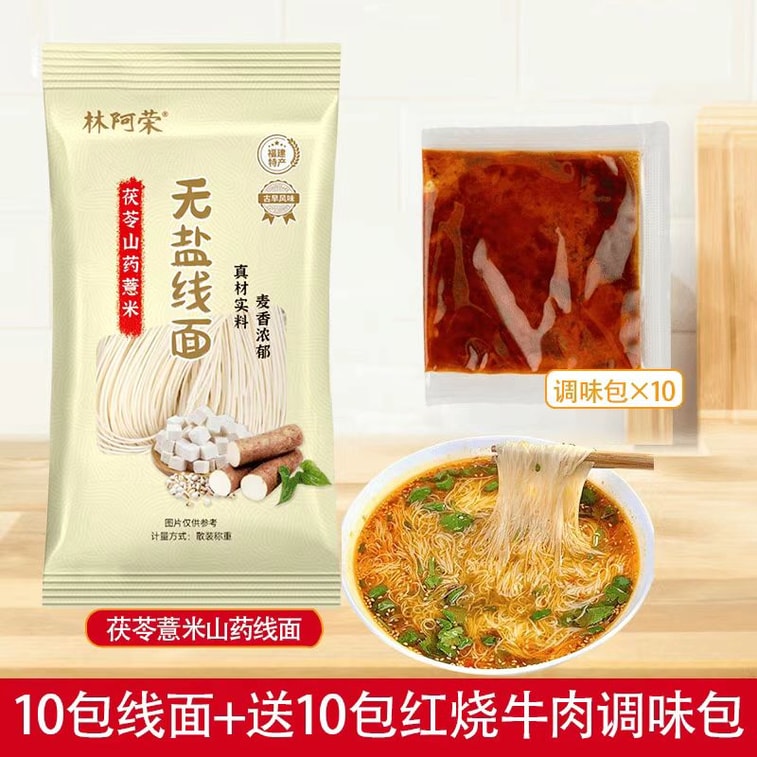 【中国直邮】 无盐茯苓薏米山药线面40g*10袋+调味包10袋