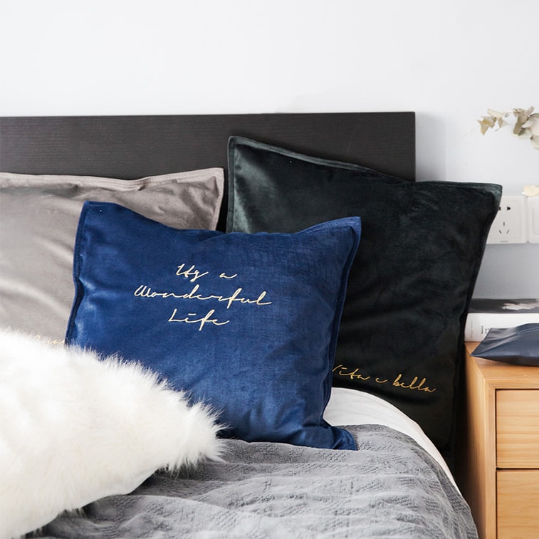 述物ins北欧风丝绒抱枕客厅卧室正方形沙发靠垫床头腰靠枕套-蓝色 | 亚米