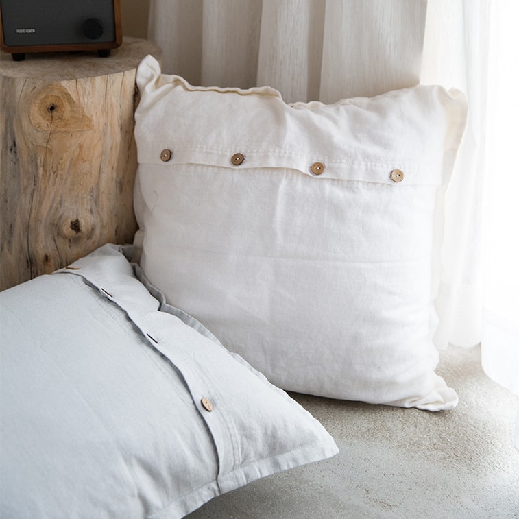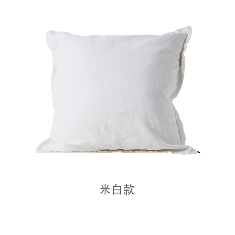 述物椰壳扣亚麻抱枕靠垫家用沙发客厅简约北欧靠枕床头抱枕套-米白 | 亚米