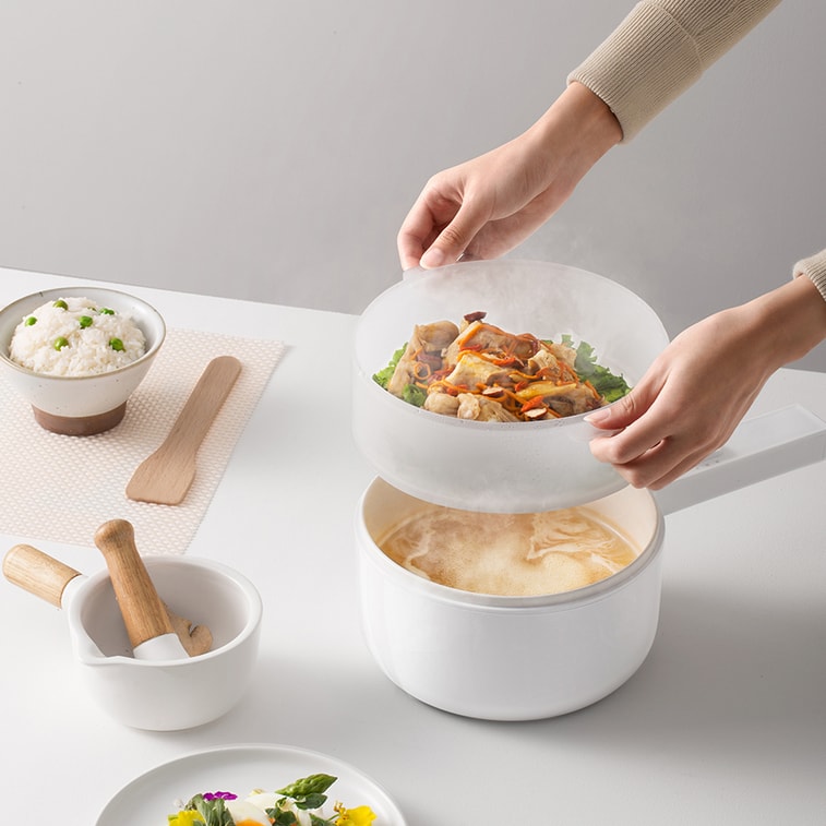 OLAYKS 立时畅销中日韩1.5L电煮锅+蒸笼 多功能一体小型电锅电炒锅100~120V 通用 宿舍/宿舍神器