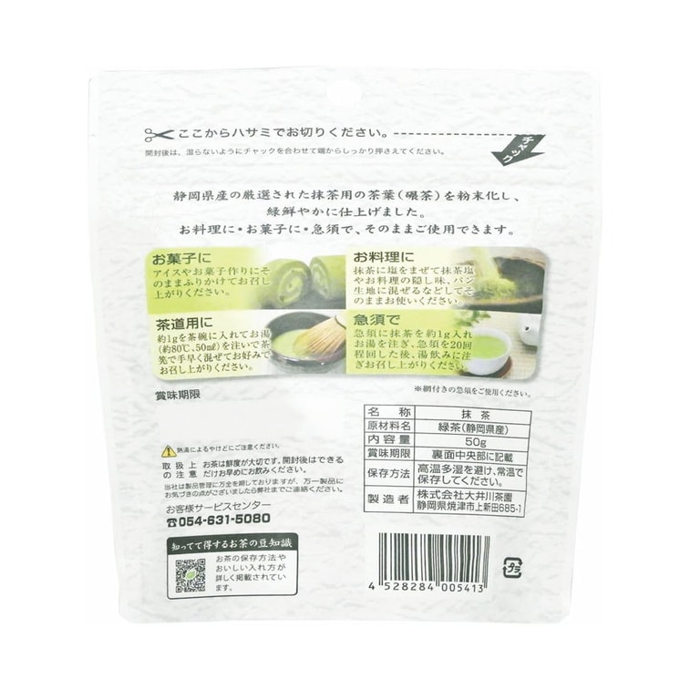 日本 小川 静冈县 大井川茶园 抹茶粉 茶道烘焙均可 50g