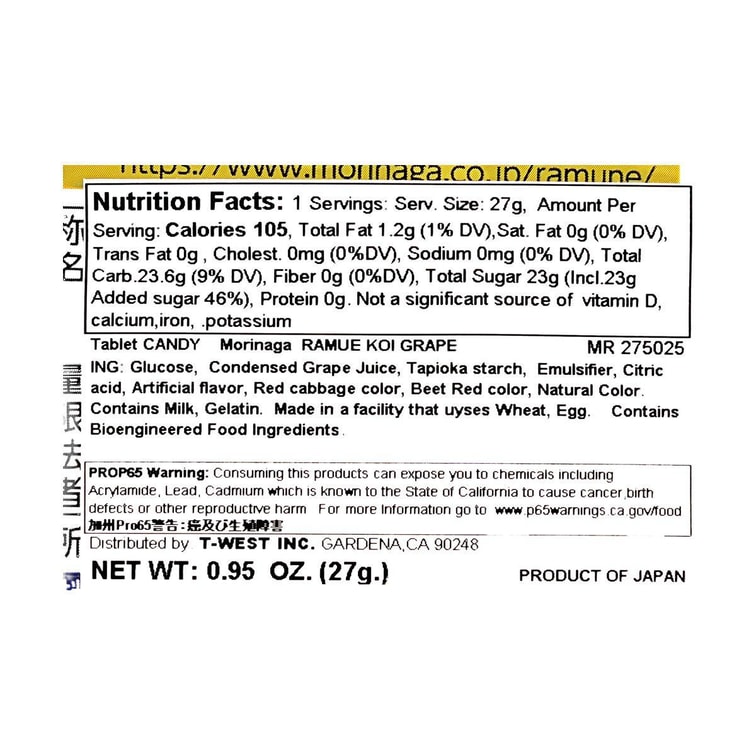 日本MORINAGA森永 大粒波子汽水糖 浓郁葡萄味 27g