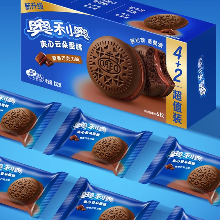 大陆版OREO奥利奥 夹心云朵蛋糕 橙香巧克力味 6枚入 132g【早餐下午茶点心】
