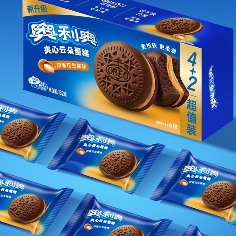 奥利奥 夹心云朵蛋糕 浓香花生酱味 6枚入 132g【早餐下午茶点心】