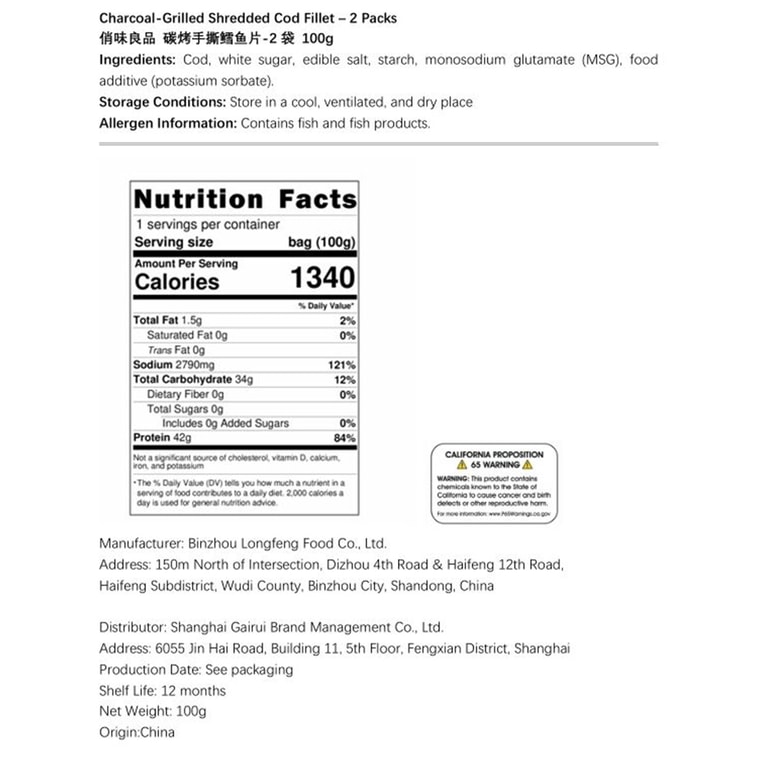 俏味良品 【爆款】原味鳕鱼片烤鱼片 即食手撕低脂零食 2袋