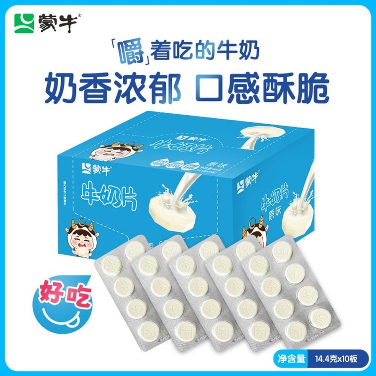 蒙牛 美国 原味牛奶片 10板 盒装 (80片) 口感酥脆 营养美味 14.4克×10板