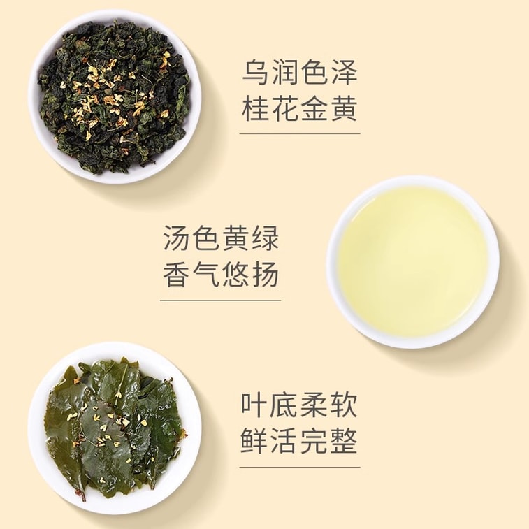 桂花乌龙 鲜爽花果韵,茶清鲜 沁人香,乌润色泽 桂花金黄