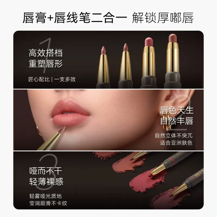 【中国直邮】 米立 OUTOFOFFICE双头雾感嘟唇唇线笔1支 唇线口红二合一 防水持久 #LP709焦糖奶橘 日杂百搭