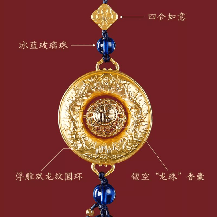 【中国直邮】 故宫淘宝 |双龙戏珠车挂车载香薰汽车挂件高档平安饰品挂饰 33*4cm