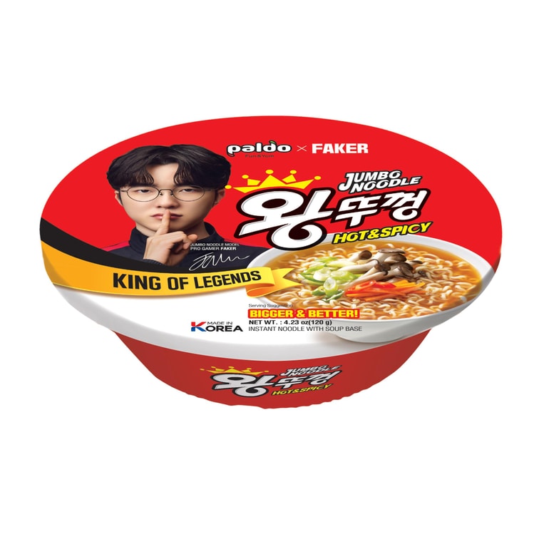 韩国PALDO八道 x FAKER联名 王碗面方便面拉面 香辣味 大碗装 120g【香辣过瘾】【巨无霸杯面】【英雄联盟世界冠军六冠王联名】