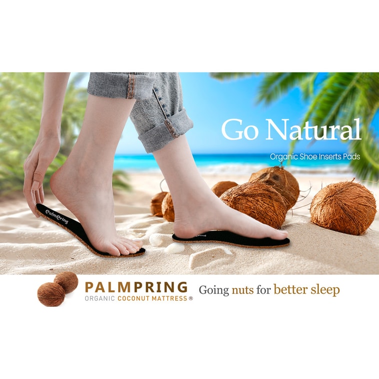 Palmpring 有机椰子椰壳纤维鞋垫 有机鞋垫减少足部疲劳气味步行舒适调节温度男士女士