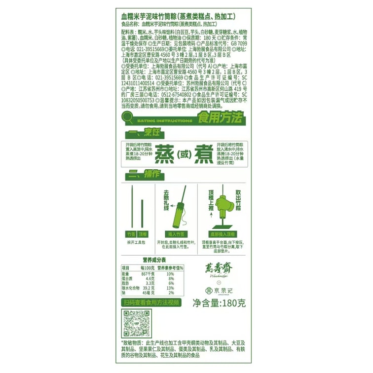 万寿斋 熊猫竹筒棒棒粽 奶黄果脯味180g【网红新口味】