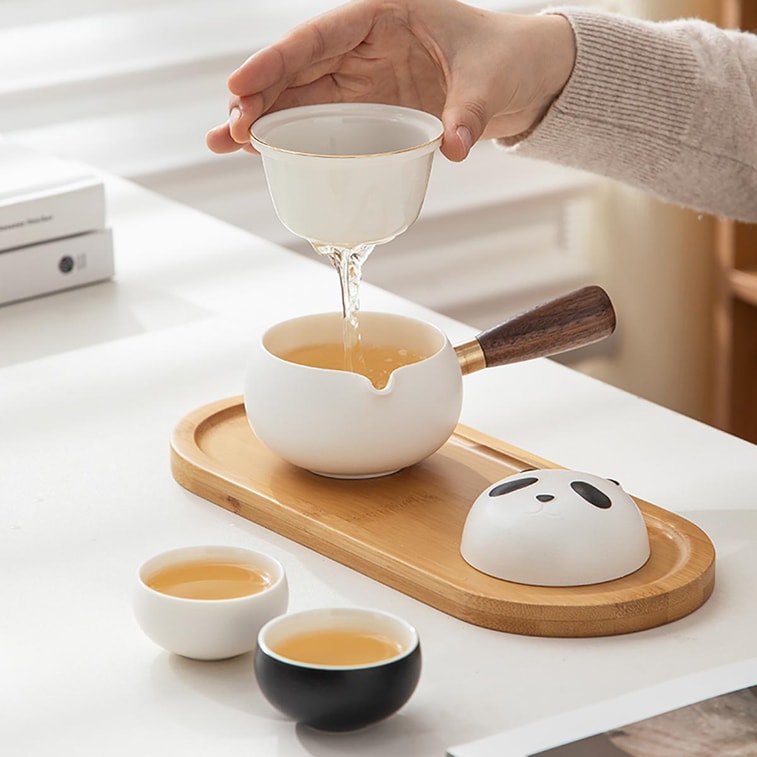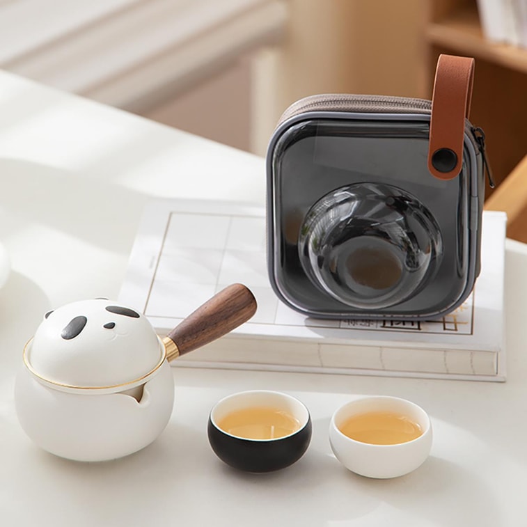 南山先生 熊猫茶具 陶瓷侧把茶具礼盒 便携式旅行茶具套装 黑白品杯 1壶+2杯+1收纳包