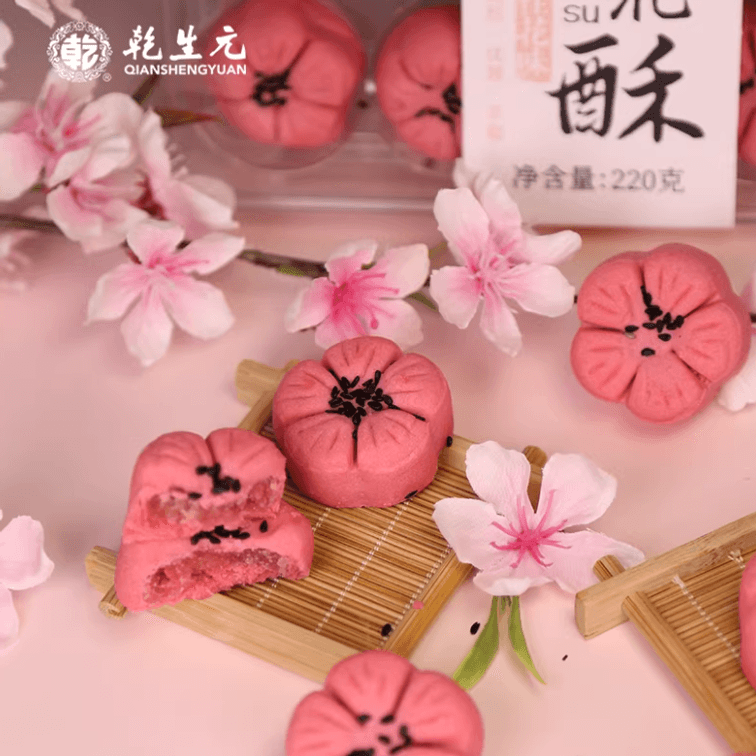 【中国直邮】 乾生元 桃花酥 淡淡花香 口感细腻 香甜可口 中式糕点早茶 苏州特产休闲零食伴手礼 220g 1盒