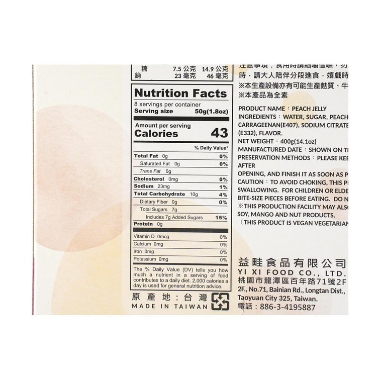 台湾小山等露 水蜜桃冻 水果果冻 8枚 400g