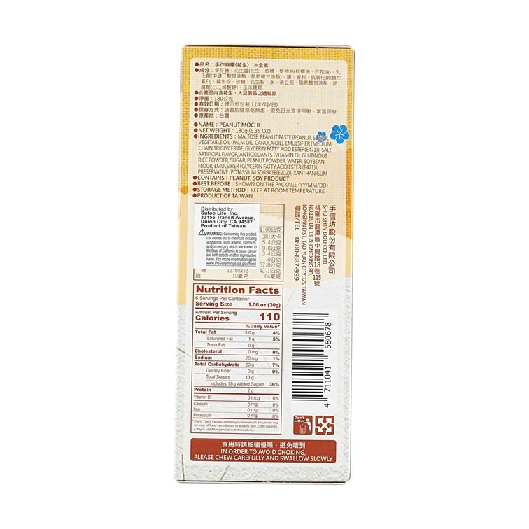 台湾手信坊 雾隐城 手作花生麻糬 6枚入 180g