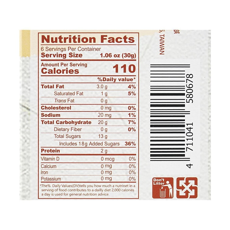 *免责声明:本页面所展示的营养成分信息来自商品包装,仅供参考。因包装版本、语言或拍摄方式不同,内容可能存在偏差或显示不完整,请以实际收到商品包装为准。如对成分、过敏原或适用人群有疑问,建议在使用前仔细阅读包装说明,或联系客服获取帮助。