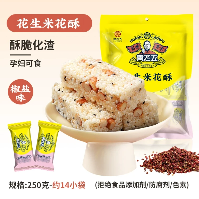 【中国直邮】 黄老五 花生米花酥(焦糖味) 四川特产大米花糖250g*1袋