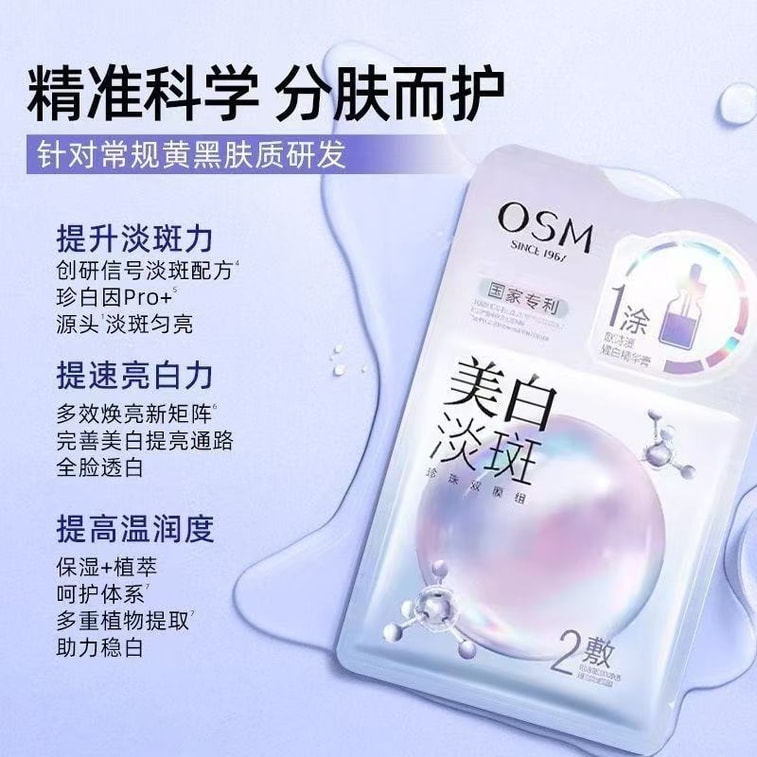 【中国直邮】 欧诗漫 珍珠美白淡斑精华面膜 补水保湿淡斑改善暗沉 1涂2敷两部曲 5片/盒
