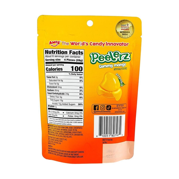 AMOS阿麦斯 剥皮软糖 芒果味 170g【真实果汁添加】