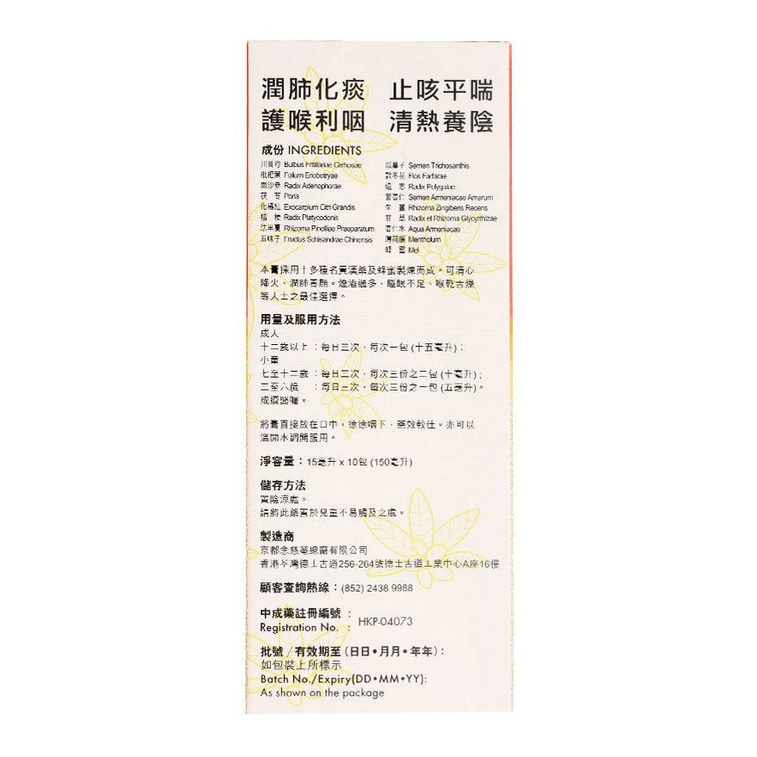 【香港直邮】 NIN JIOM 京都念慈菴 蜜炼川贝枇杷膏 便利装 15ml x 10包