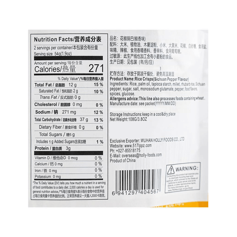 良品铺子 花椒锅巴 椒香味 108g 【新老包装随机发货】