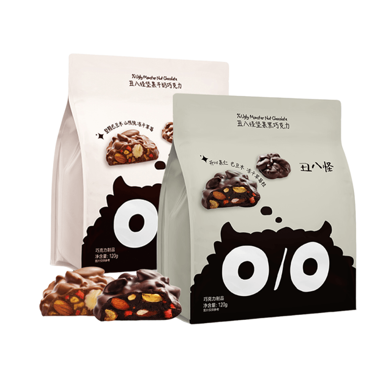 【中国直邮】 丑八怪 坚果巧克力墩墩 黑巧&牛奶纯可可脂巧克力块 圣诞新年办公室休闲零食糖果【酥脆香甜 浓厚香醇 层层递进】 120g*2袋