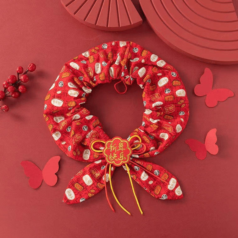 【中国直邮】 华元宠具 宠物喜庆围巾新年快乐L码 30-55cm*1个