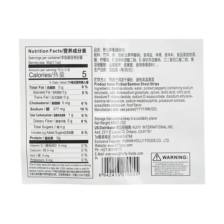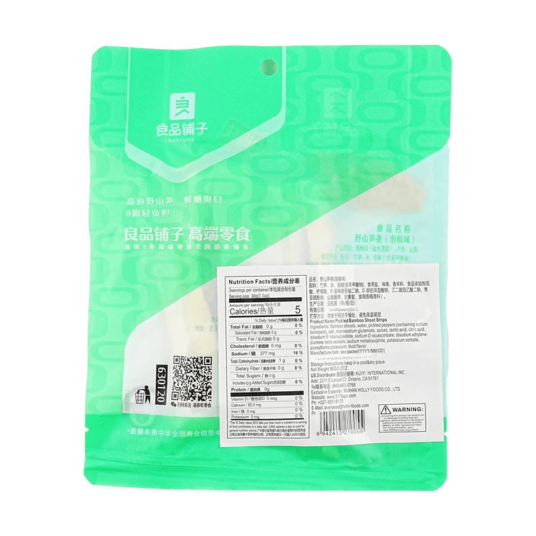良品铺子 野山笋条 泡椒味 90g【开袋即食竹笋】