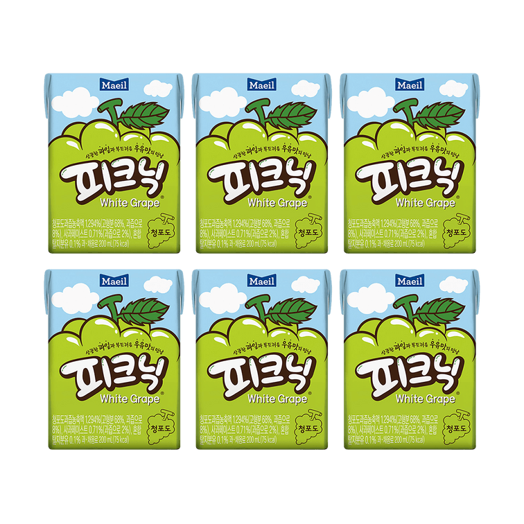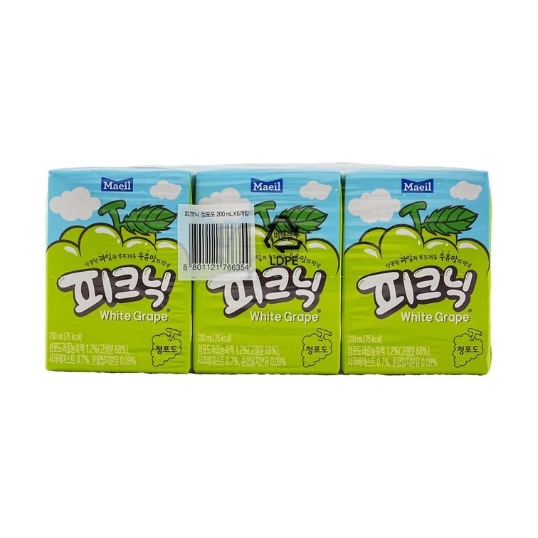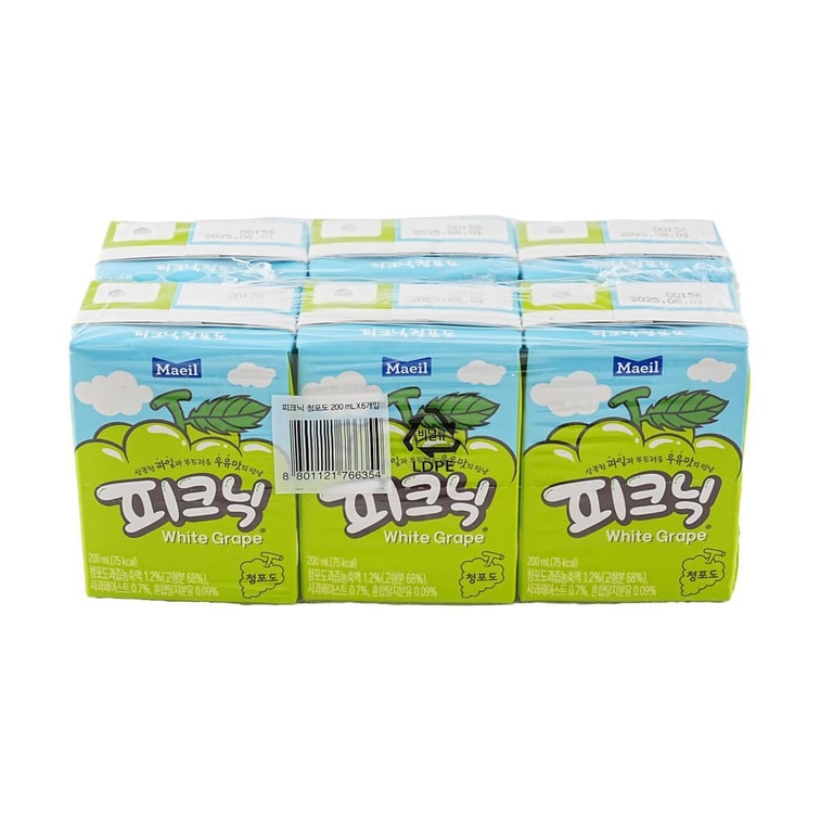 韩国MAEIL 青葡萄果汁饮料 200ml*6盒【小红书爆火】【朴彩英同款】