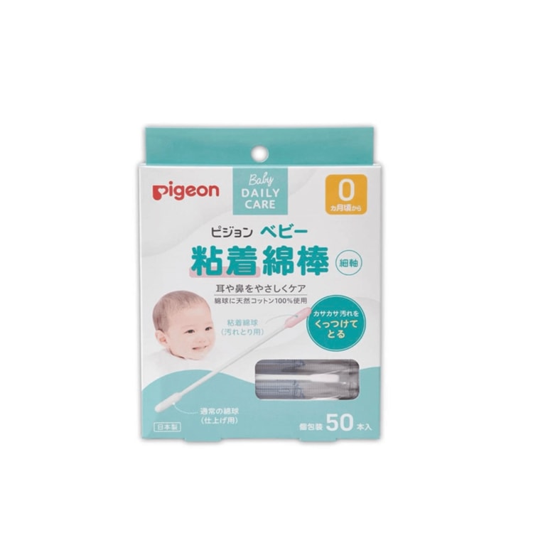 日本 PIGEON贝亲 细轴型婴儿专用粘着型棉棒 宝宝细轴棉签 独立包装 50支