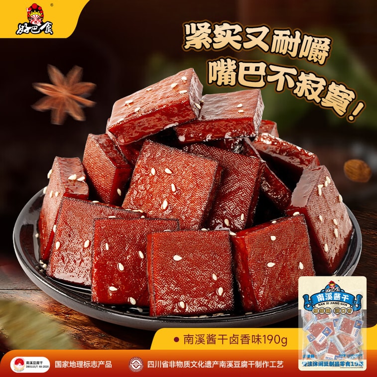 【中国直邮】 好巴食 平江风味南溪酱干 卤香味 0反式脂肪酸耐嚼饱腹小零食 190g/袋