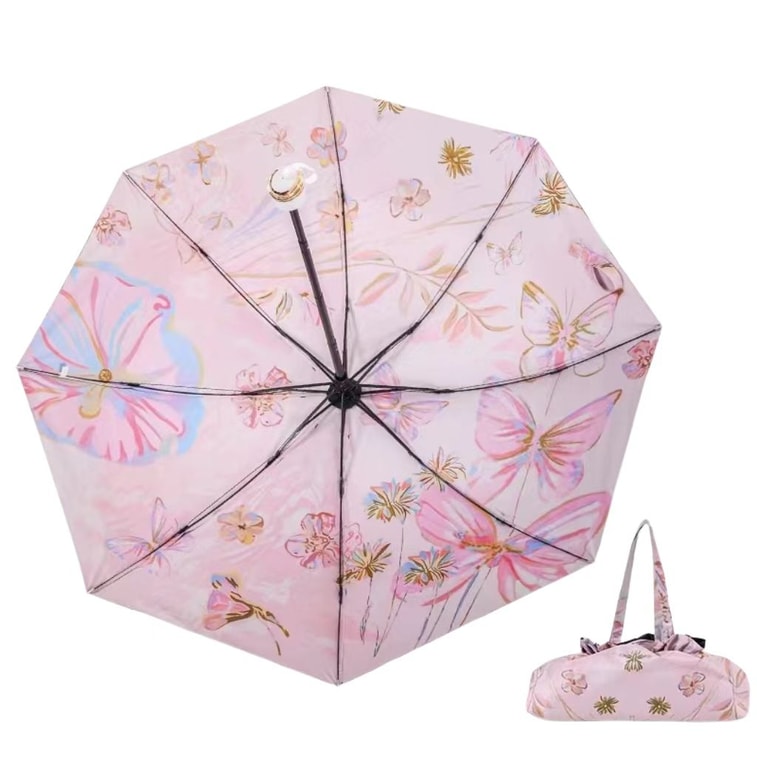 海蓝星 粉金蝴蝶 SPF 50 晴雨两用太阳伞 三折轻巧 黑漆钢骨 晴雨两用 优质印花 防晒防紫外线 一件 | 亚米