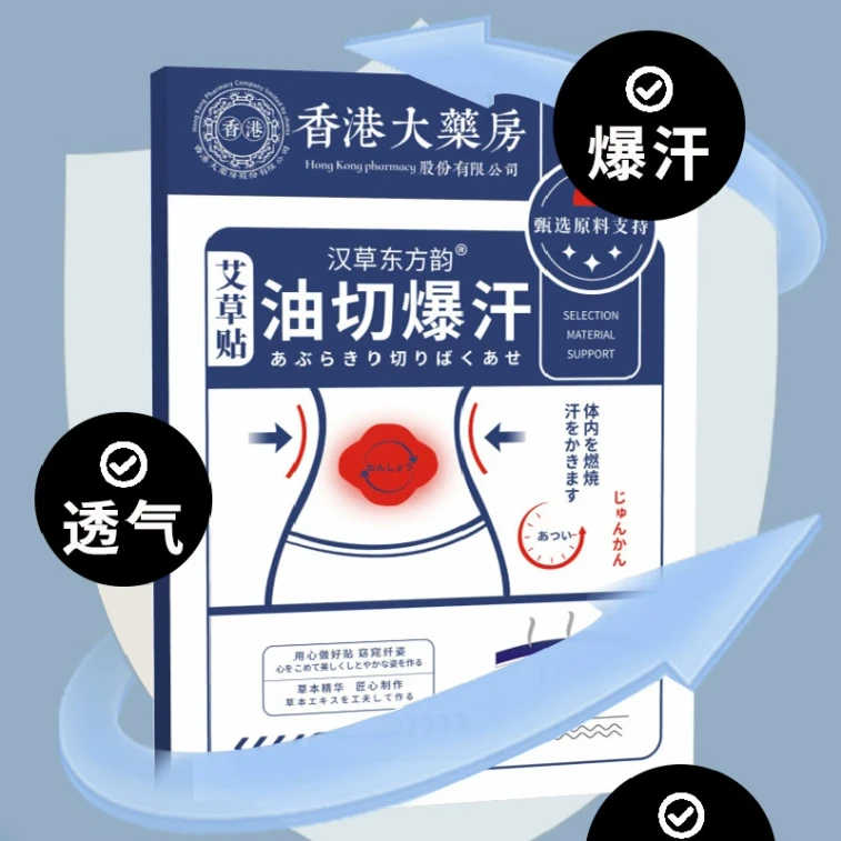 香港大药房 油切暴汗去湿贴 艾草贴 肚脐贴温灸贴肚脐大肚贴 12贴/盒