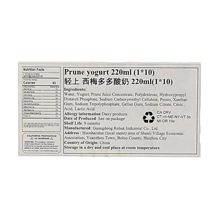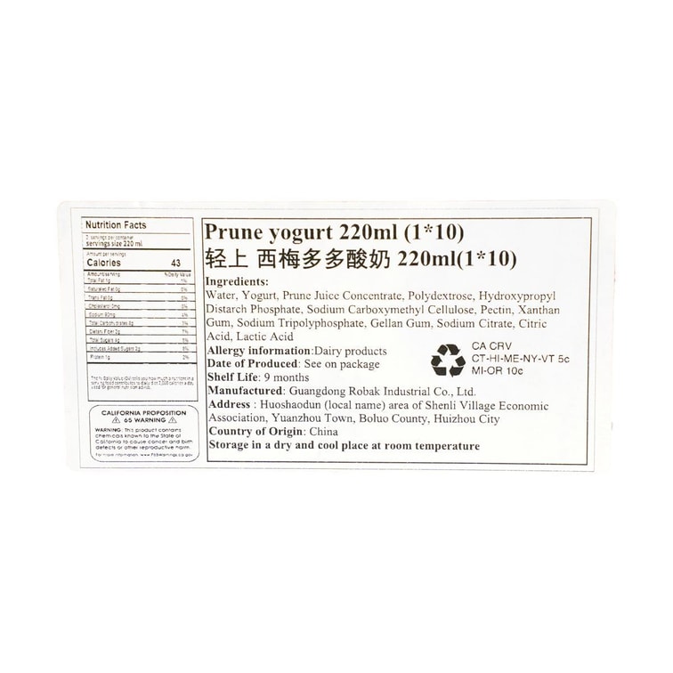 | 口味 | 西梅酸奶 |