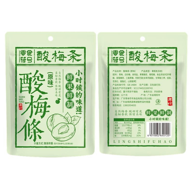 【中国直邮】 零食符号 酸梅条无核即食酸甜开胃解馋露营办公室零食原味+陈皮味 80g*2袋装